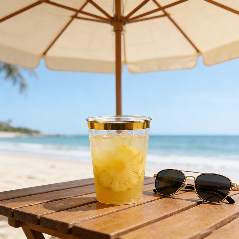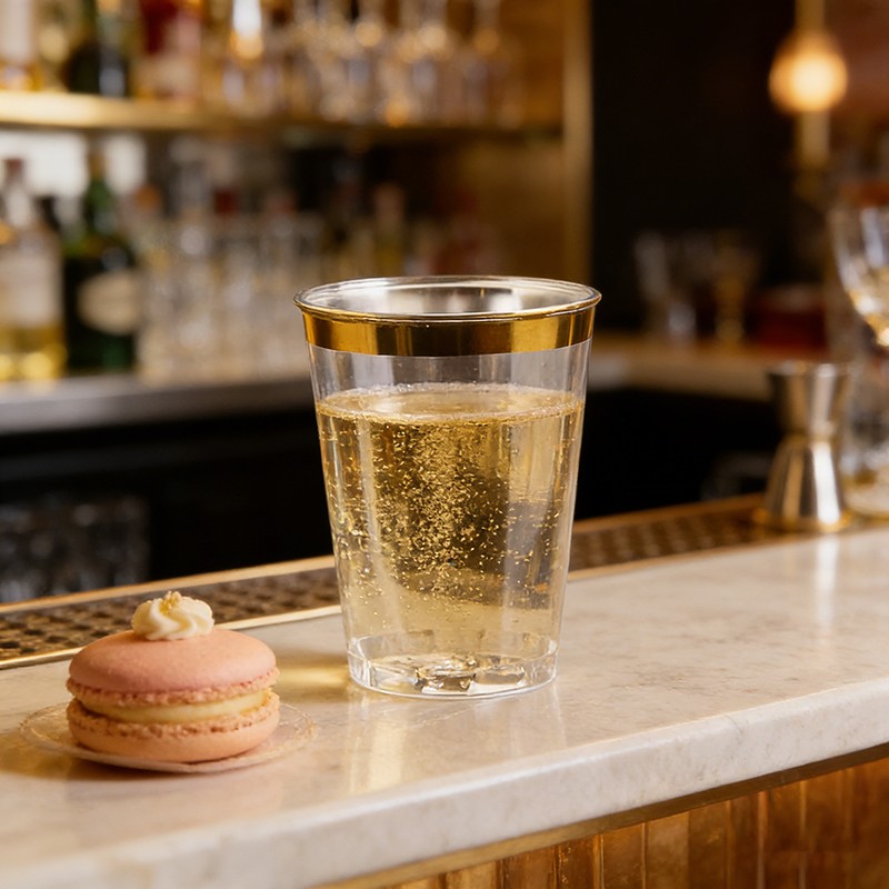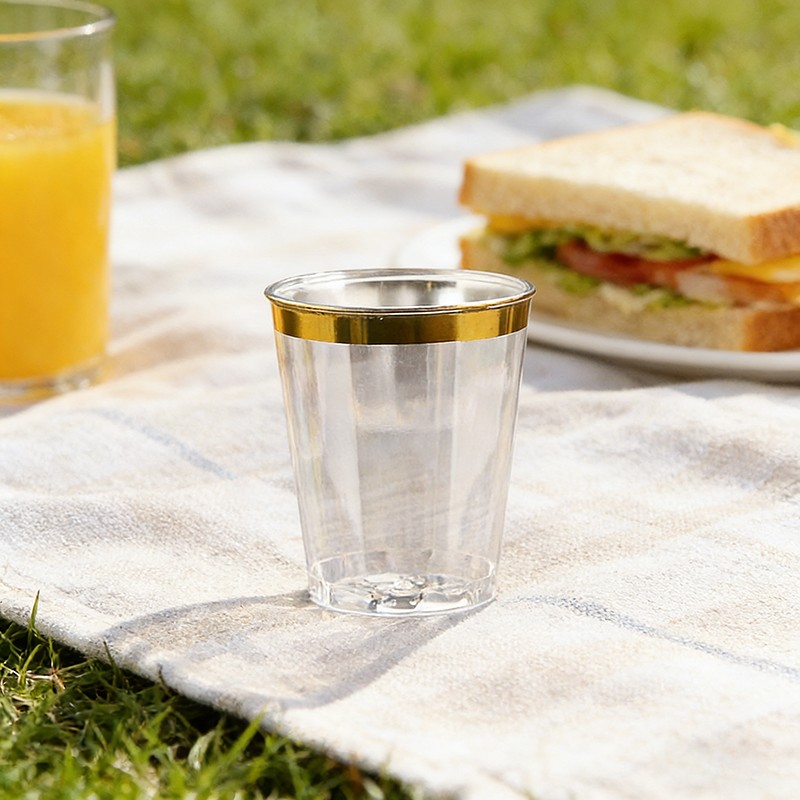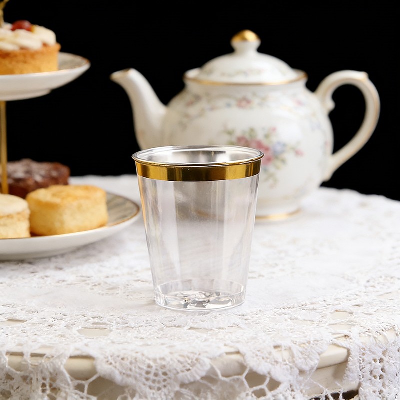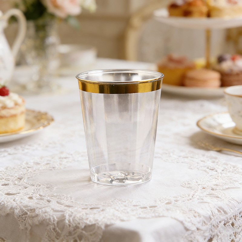 clear cup + gold rim10oz Ideal Capacity: Perfect 10-ounce size for wine, cocktails, beverages, desserts and party drinks, suitable for all kinds of celebrations.