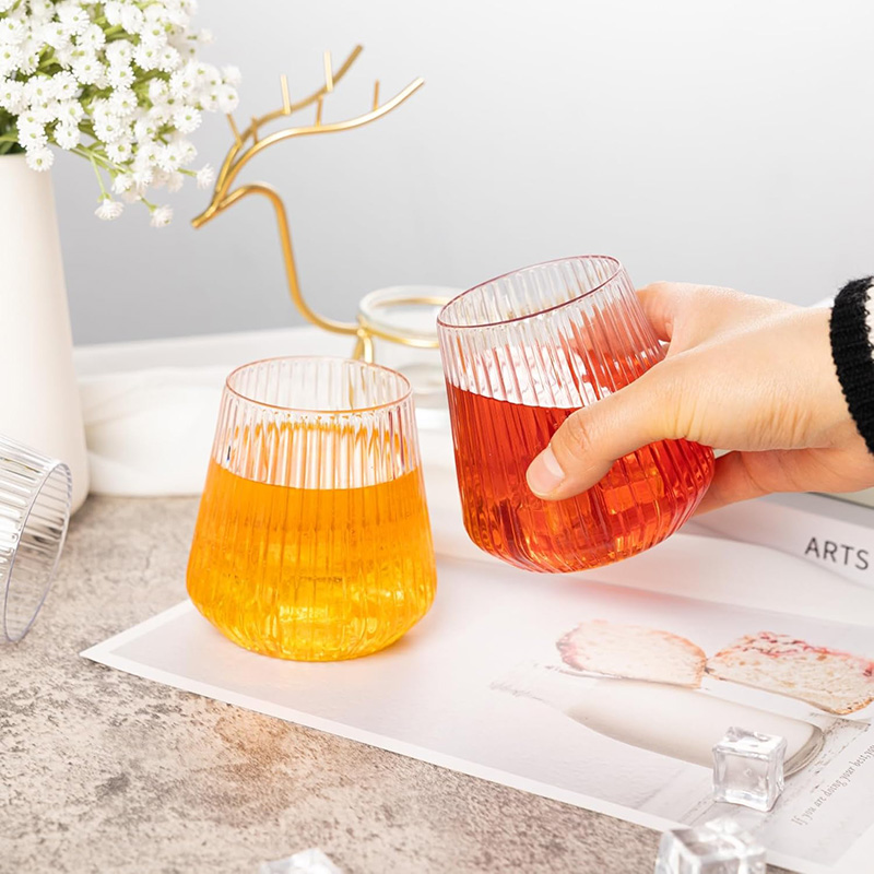 Perfect for serving red wine, whiskey, bourbon, cocktails, or even non-alcoholic beverages like iced coffee and fruit punches, its stemless structure offers enhanced stability and easy handling, making it ideal for parties, picnics, outdoor barbecues, poolside gatherings, or everyday home use.