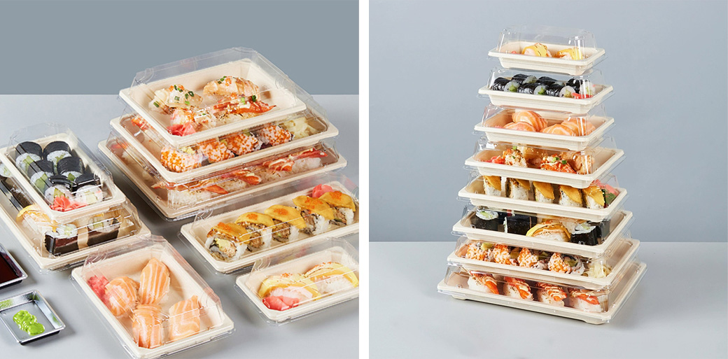 As the demand for sustainable food packaging continues to grow, restaurants and takeout businesses are seeking innovative ways to present their dishes without harming the environment. The **Biodegradable Sugarcane Bagasse Rectangular Sushi Tray ** from **Biosettings** is the perfect solution. Designed for sushi, bento, and other delicate meals, this eco-friendly tray combines sleek presentation with earth-conscious materials.