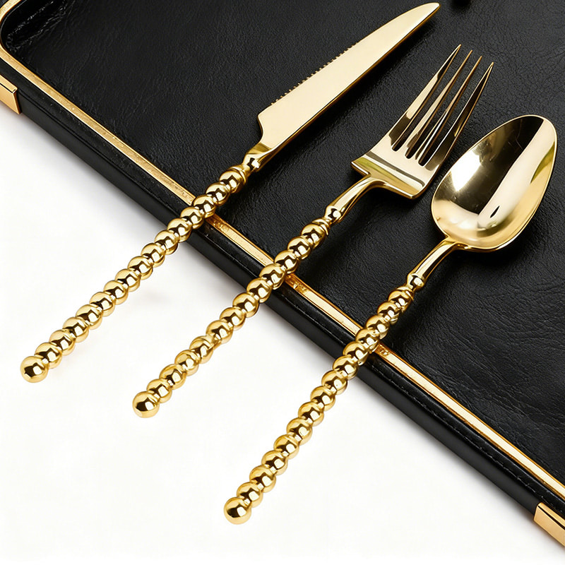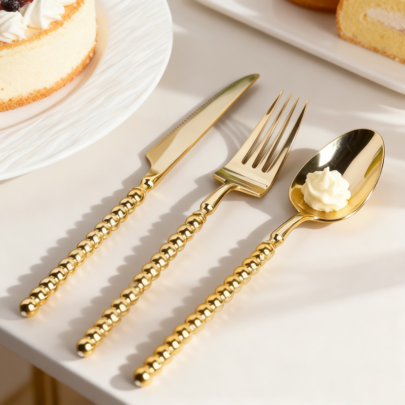 GoldProduct Configuration: Complete disposable cutlery set including knife, fork, and spoon, made of high-quality PS (polystyrene) material. Food-safe and compliant with international food contact standards.