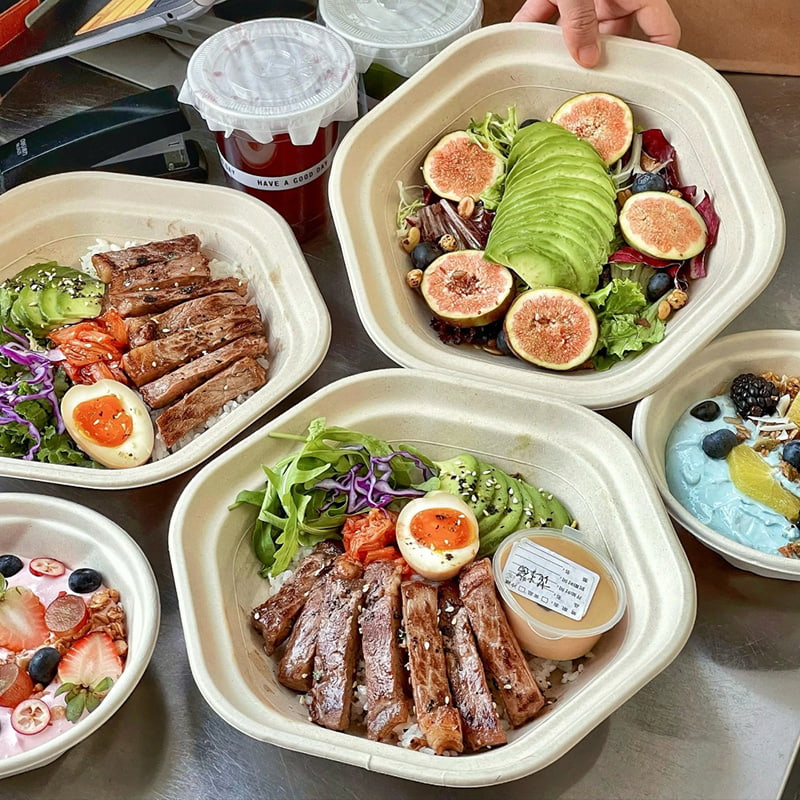 228*66mm, 228*79mmOur leak-proof, hexagonal sugarcane bowls are a sustainable statement your customers will love. But their real power is unlocked with your custom logo.