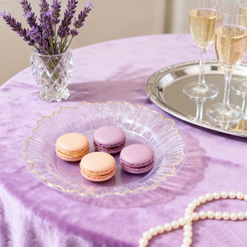 17.8 cm, 25.4 cmCore Specs & Safe Material: Disposable decorative irregular plate with gold rim trim, made of high-quality food-grade BPA-free plastic; shatter-resistant and sturdy, suitable for holding salads, fruits, desserts, appetizers and light snacks without bending or leaking.