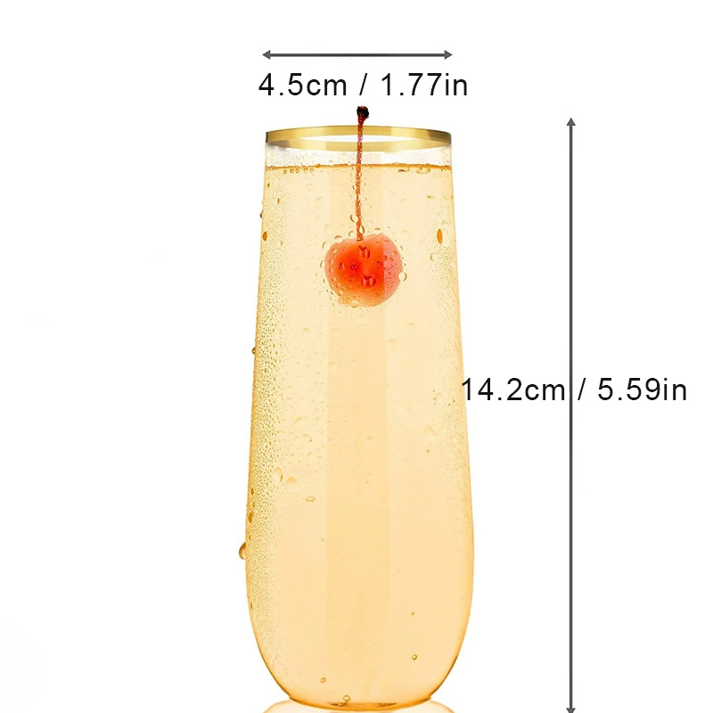 H14.2cm*W5.7cm*4.5cmLuxurious Gold Rim Design: The sleek, metallic gold rim elevates the visual appeal of your drinks, adding a festive, high-end touch to weddings, anniversaries, holiday parties, or bridal showers. The gold finish is fade-resistant and scratch-proof, maintaining its shine even after repeated use.