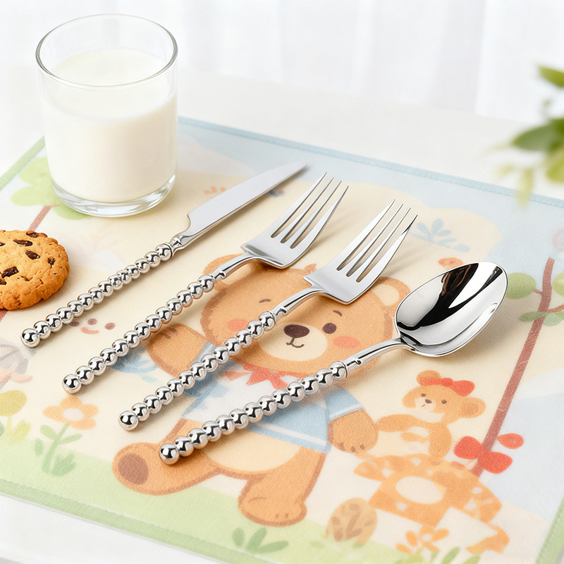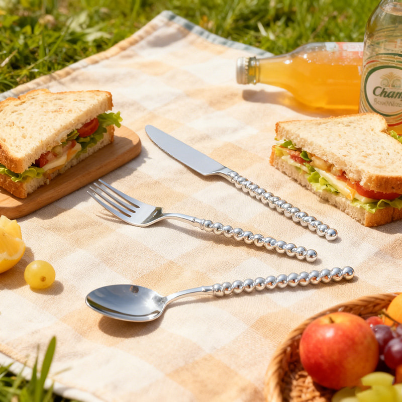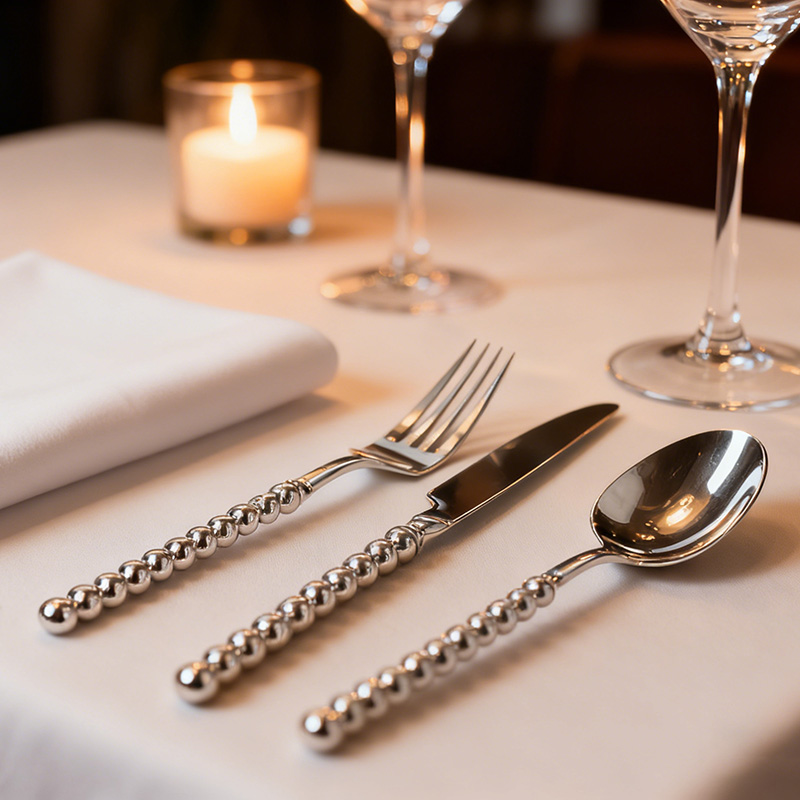 Elegant Standout Design: Features a lustrous silver pearl handle with an iridescent finish that mimics the shine of pearl and silver, adding sophistication and glamour to table settings for home or restaurant use.