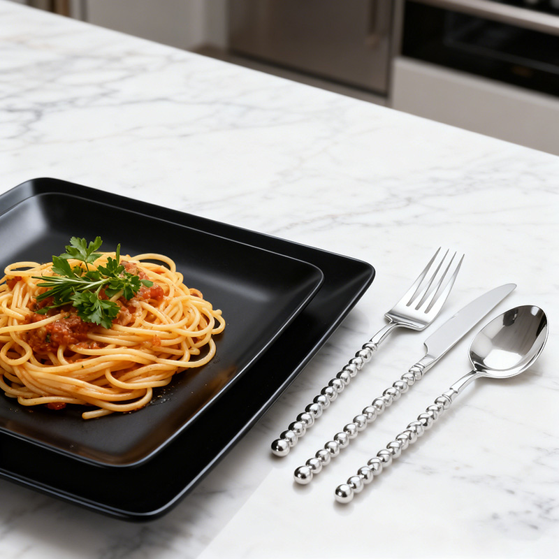 Practical Functional Design: Knife delivers effortless slicing for hearty foods, fork tines securely spear salads/meats, and spoon is shaped for easy scooping of soups/sauces/desserts, meeting all dining requirements.