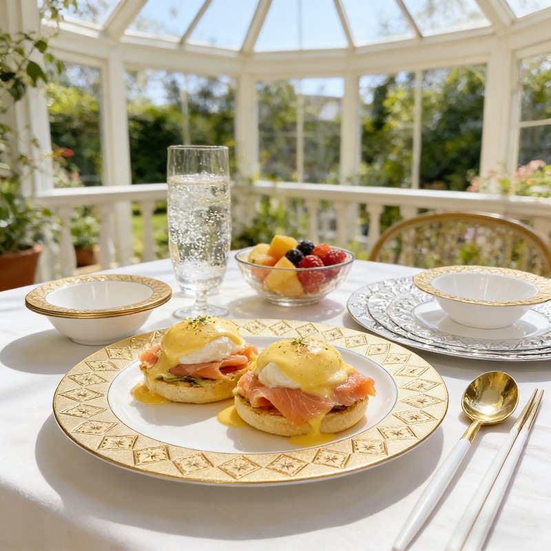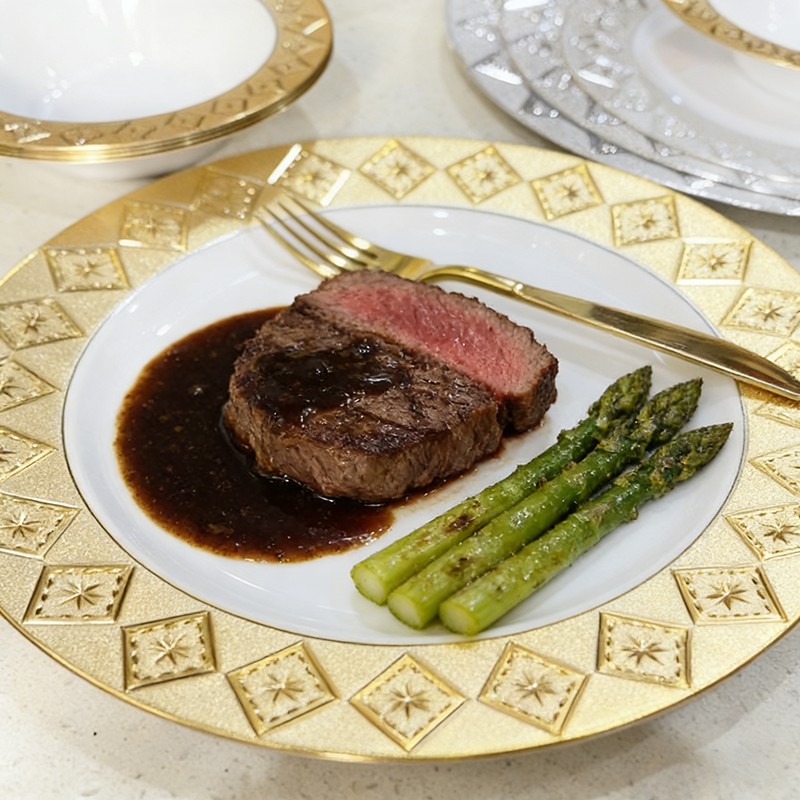 Serves as both decorative charger plates for table layering and functional dinner plates for serving food, perfect for weddings, showers, and banquets.
