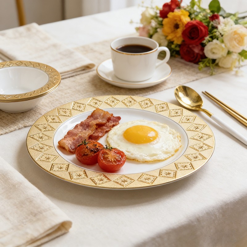 Delicate 3D embossed detailing mimics premium ceramic/metal chargers, adding timeless elegance to wedding receptions, galas, and catering events.