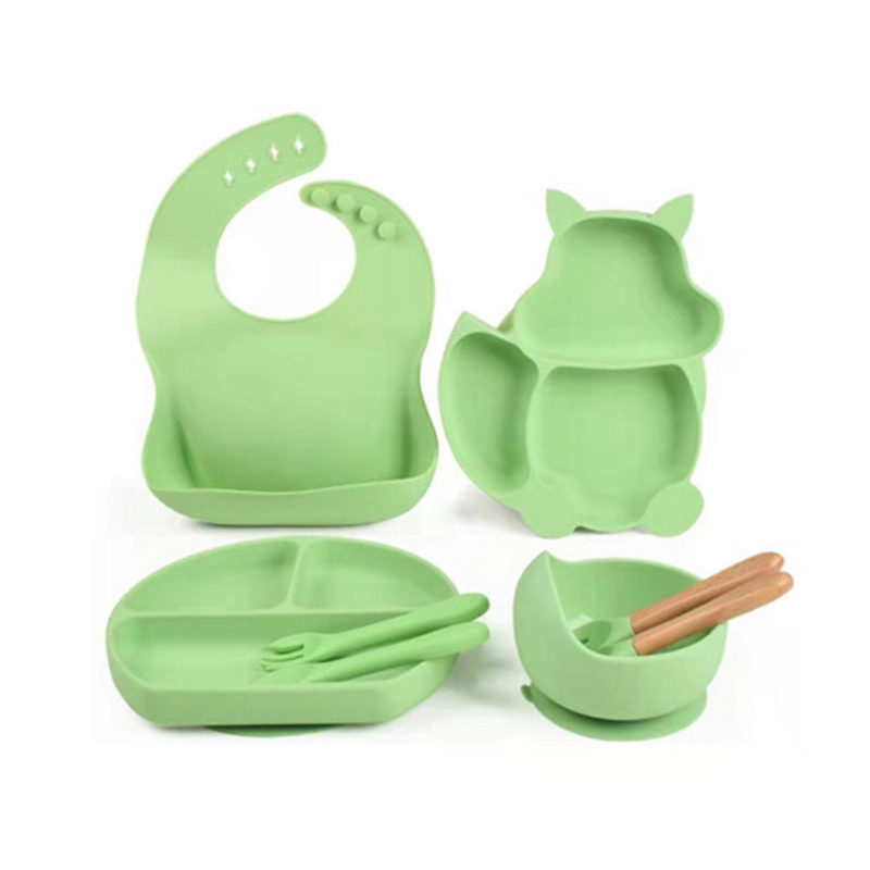 CustomizedComplete Fox Set: Includes suction plate, suction bowl, silicone bib, natural wood spoon, and additional spoon & fork.