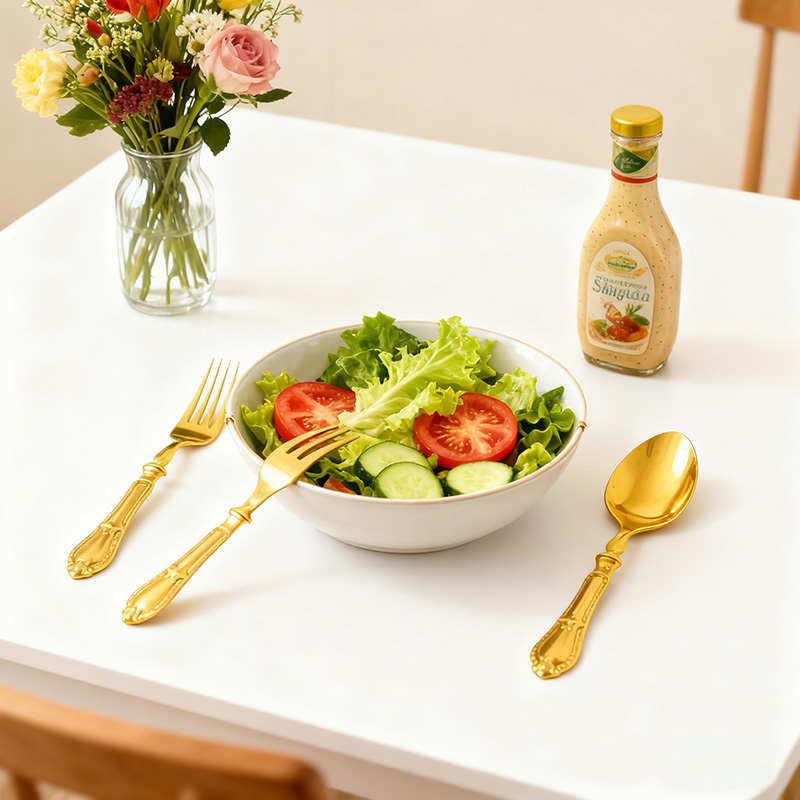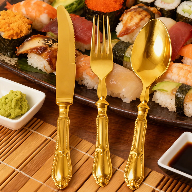 Practical Functional Design: Sharp knife edge for effortless slicing, robust fork tines for secure spearing, and contoured spoon for smooth scooping—suitable for a wide range of gourmet foods and discerning diners.
