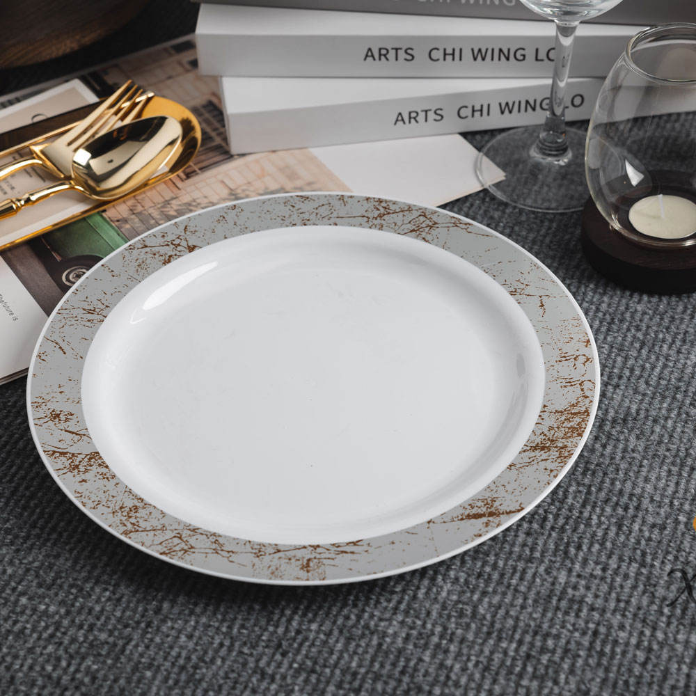 β¨ White Plastic Dinner Plate with Gold Marble Rim: Elegant and stylish tableware with a premium finish